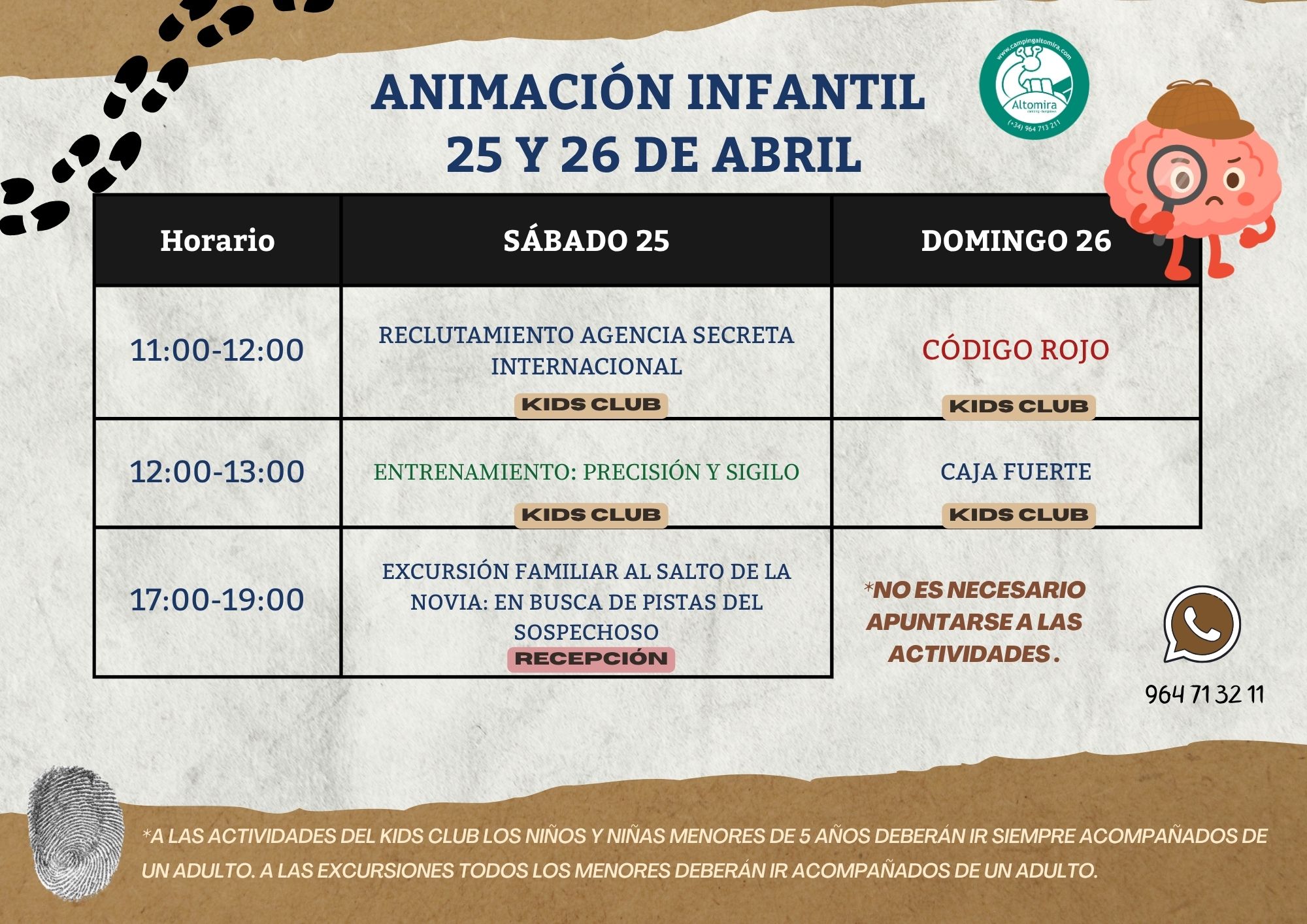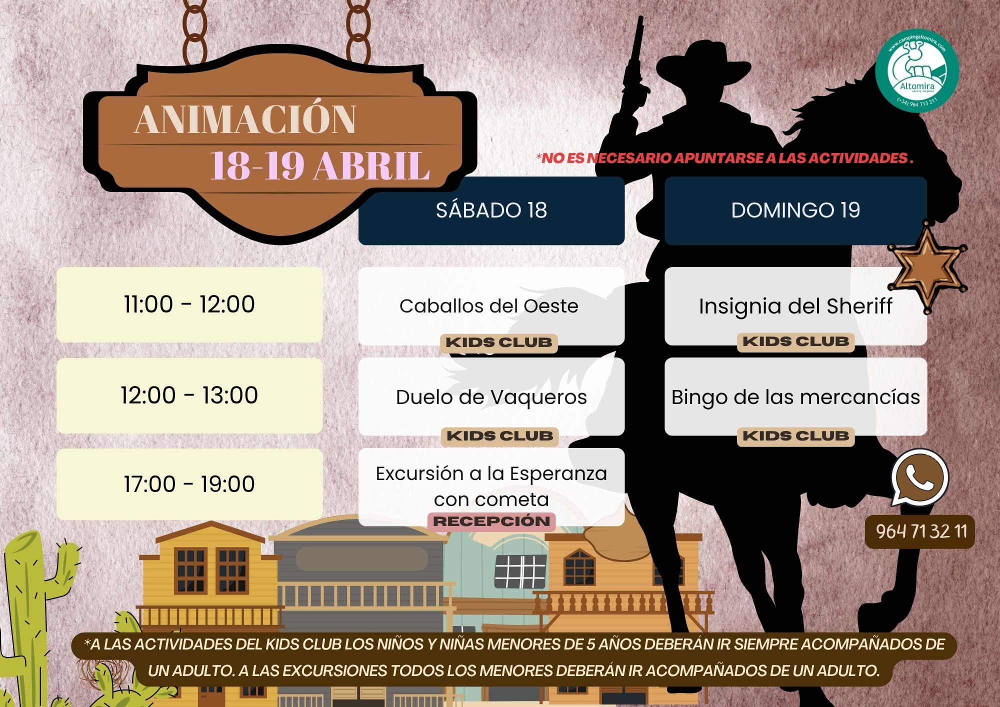Recordad que tendremos actividades de ANIMACIÓN todos los fines de semana, puentes, festivos y en temporada alta.