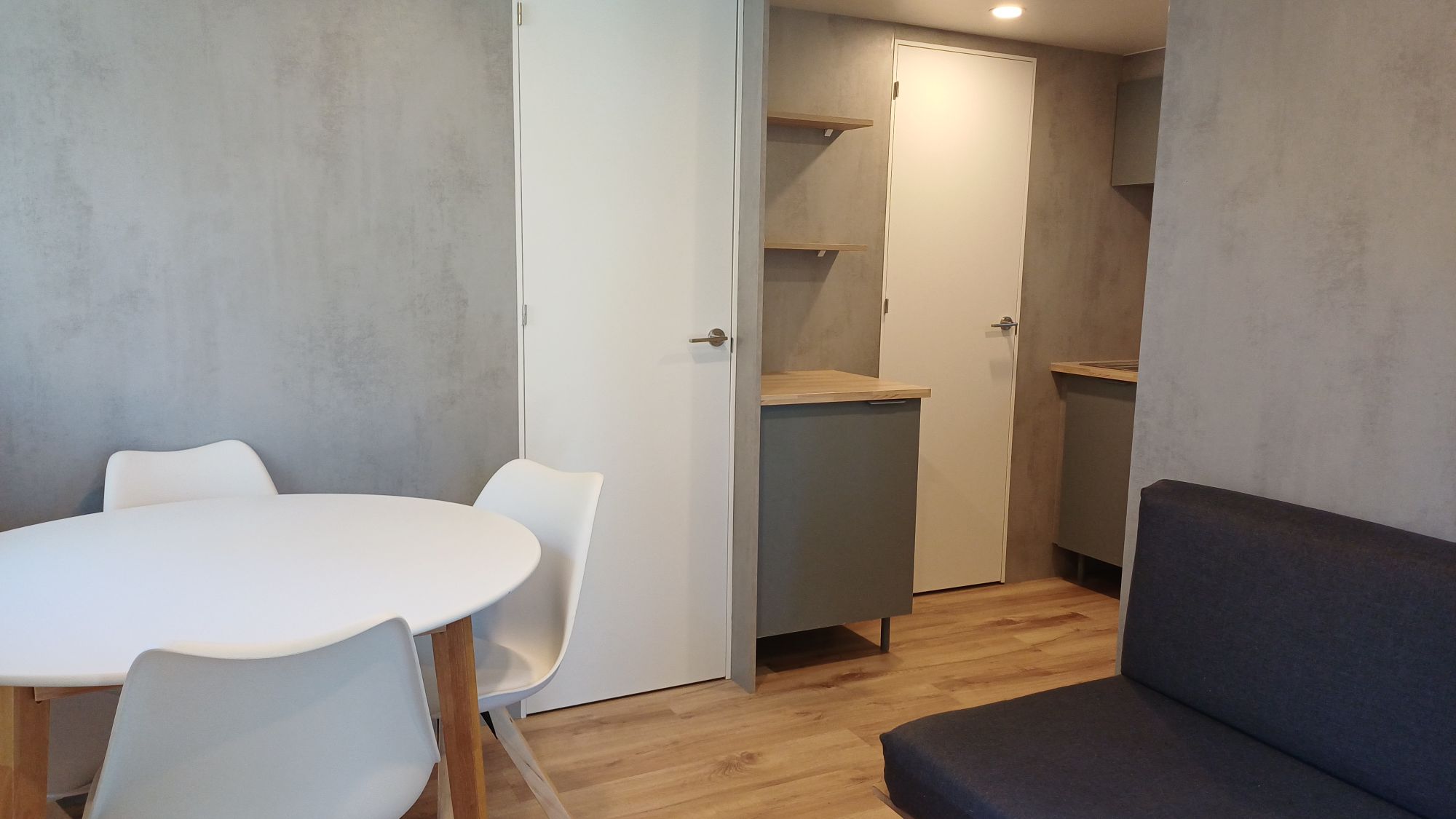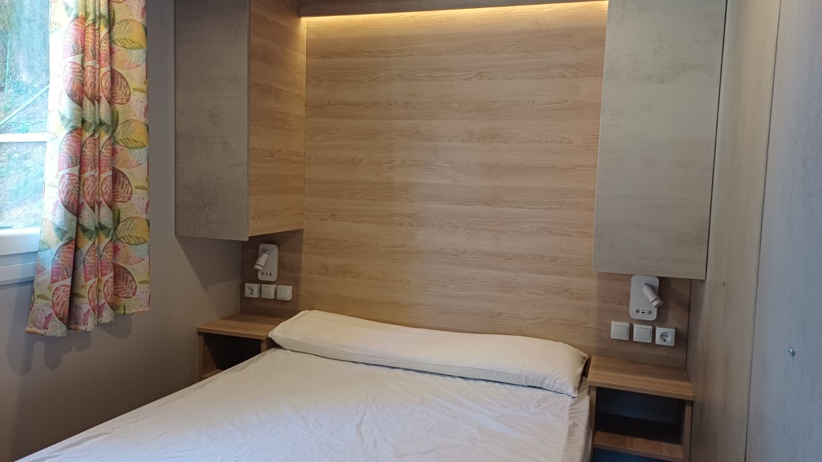 Bungalow of 33,41 m2 with equipped terrace. Maximum capacity of 5 people. Living room-kitchen, bathroom with toilet and shower. Two bedrooms (one bedroom with double bed and another with a bunk bed and an individual bed). NO PETS ALLOWED.