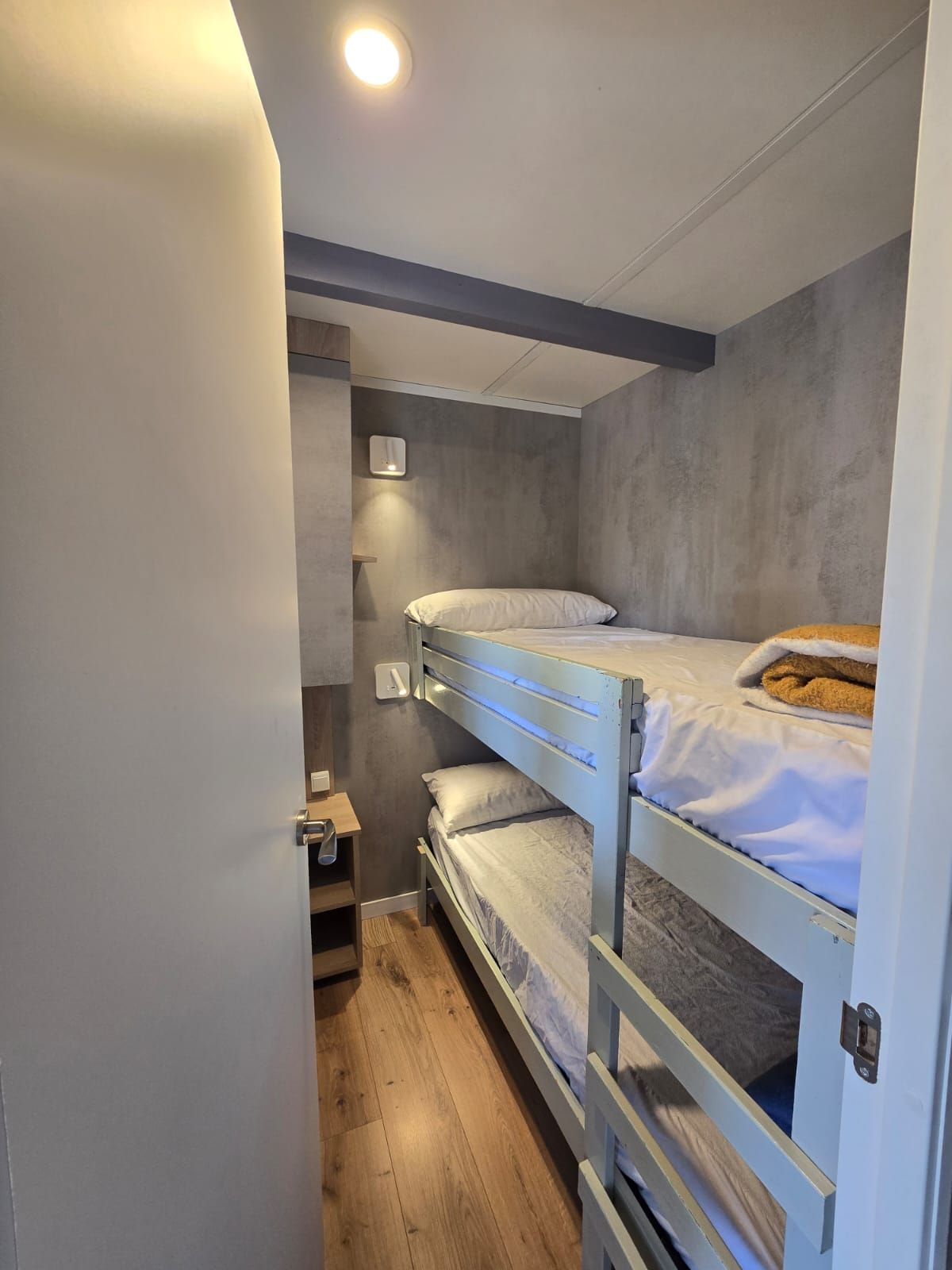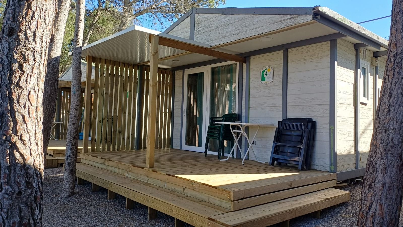 Bungalow of 42,51 m2 with equipped terrace. Maximum capacity of 6 people. Living room-kitchen, bathroom with toilet and shower. Three bedrooms (two bedrooms with double bed and another with bunk bed).