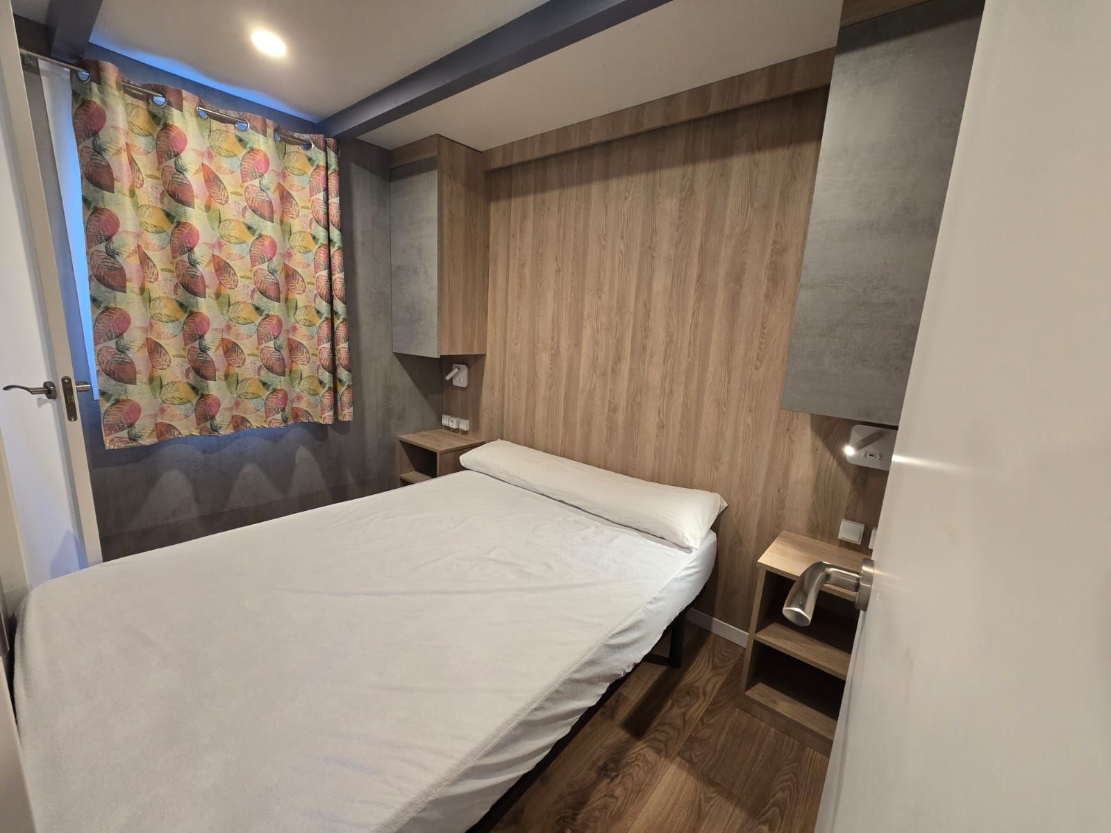 Bungalow of 33,41 m2 with equipped terrace. Maximum capacity of 5 people. Living room-kitchen, bathroom with toilet and shower. Two bedrooms (one bedroom with double bed and another with a bunk bed and an individual bed).