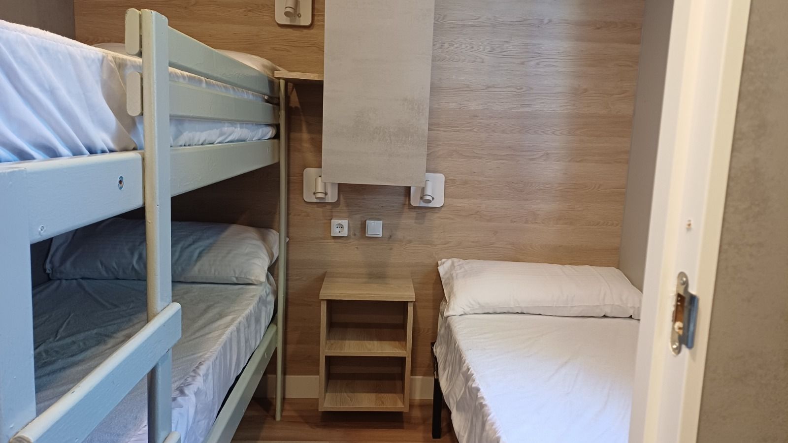 We have bungalows for 5 and 6 people. All they are equipped with kitchenware, two stoves, fridge, microwave, TV, toilet, shower, heating and blankets/ air conditioning. Sheets and towels not included (possibility of hiring). The size of the beds is the following: individual bed 80 cm. and double bed 140 cm.